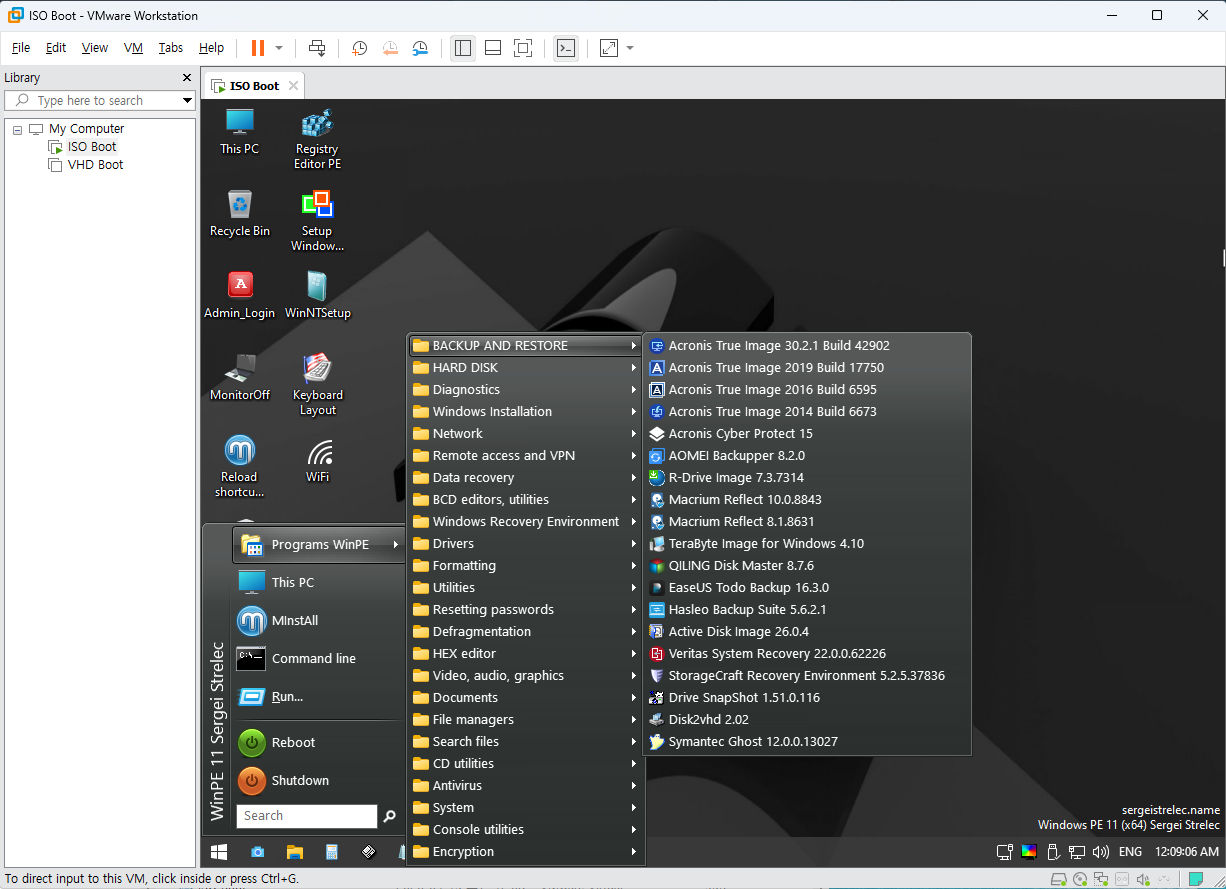 [관련문서] https://sergeistrelec.name/winpe-10-8-sergei-strelec-english/ WinPE 10-8 Sergei Strelec English » Sergei StrelecBootable disk Windows 11 and 10 PE - for maintenance of computers, hard disks and partitions, backup and restore disks and parti